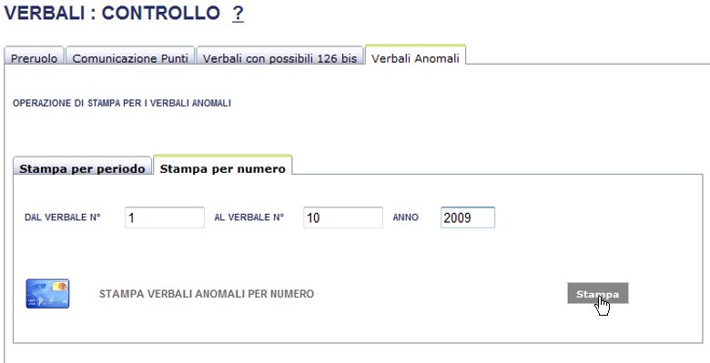 Stampa dei verbali Anomali: attraverso questa stampa si ottiene la lista dei verbali che presentano qualche 'anomalia' (ad esempio i verbali non notificati).